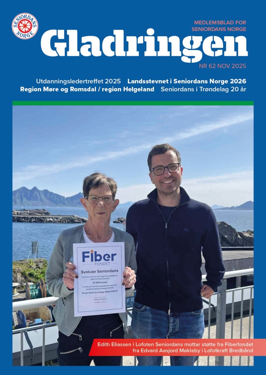 Seniordans Norge gir ut sitt eget medlemsblad, Gladringen. Bladet har to årlige utgaver, og publiseres vanligvis på vår og høsten. På denne siden får du tilgang til alle nyere utgaver av Gladringen i digitalt format. Stoff til Gladringen sendes på e-post til: gladringen@seniordans.no